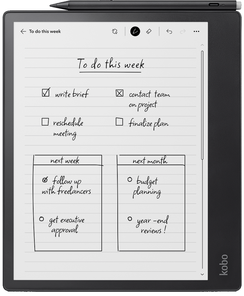 Mark up your eBooks and PDFs* with the included Kobo Stylus 2 to capture your thinking