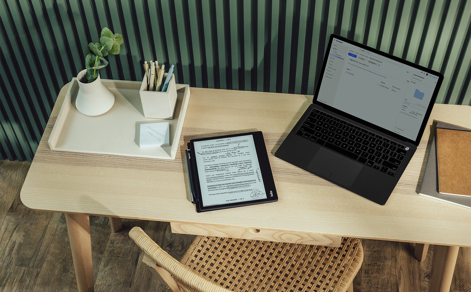 Write directly on eBooks and PDFs* with Kobo Elipsa 2E’s improved note-taking experience. Create and organize notebooks that do more than paper, and export them with integrated cloud services. Read and write comfortably on a 10.3" touchscreen with ComfortLight PRO to reduce blue light and ease eyestrain. Listen to Kobo Audiobooks with Bluetooth® wireless technology†. With 32GB of storage, carry your entire library and all your notes wherever you go. Made with recycled and ocean-bound plastic, the eco-conscious Kobo Elipsa 2E is designed to capture all your big thinking.