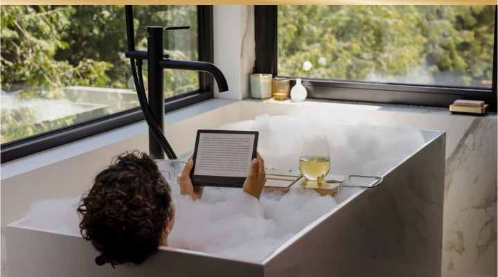 Kobo Sage was designed from the ground up with a quad-core CPU and faster, dual band WiFi to deliver top performance in one elegant package. Sleek and lightweight, Kobo Sage feels perfect in your hands in landscape or portrait mode. Page-turn buttons keep the story moving with one hand. Ergonomically designed and fully waterproof*, Kobo Sage is with you from the conference table to the bath tub. Welcome to the lap of luxury.